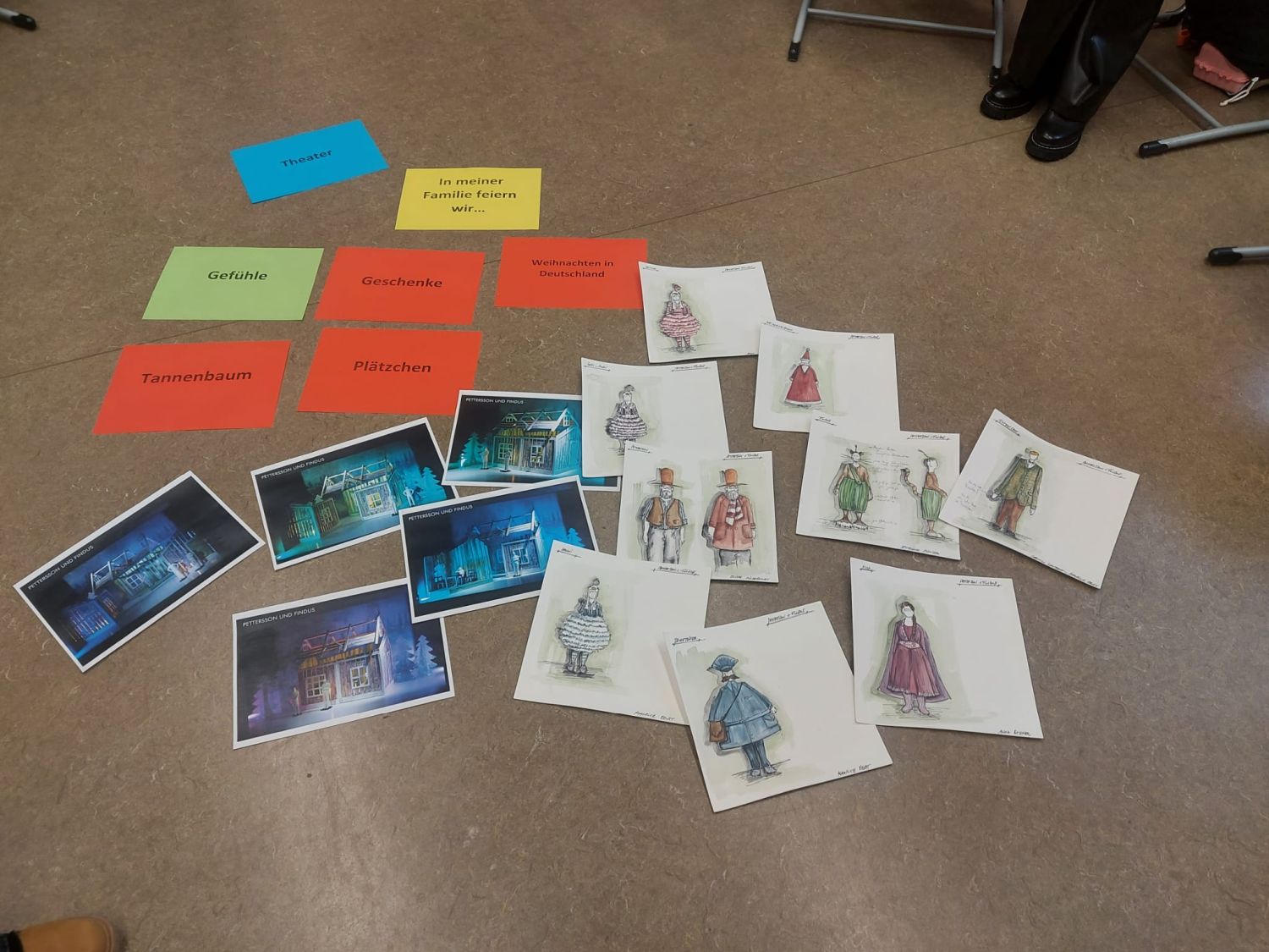 Mit Bildern, Wortkarten und kleinen Spielszenen erarbeiteten die Kinder wichtige Begriffe aus der Welt von Petterson und seinem sprechenden Kater Findus. Gemeinsam ordneten sie Wortschatz aus dem Bereich Winter und Weihnachten zu, übten Satzstrukturen und lernten typische Gegenstände und Figuren aus dem Stück kennen. Besonders viel Freude bereitete die pantomimische Darstellung von Verben wie „basteln“, „suchen“ oder „feiern“, bei der die ganze Klasse mitraten konnte.