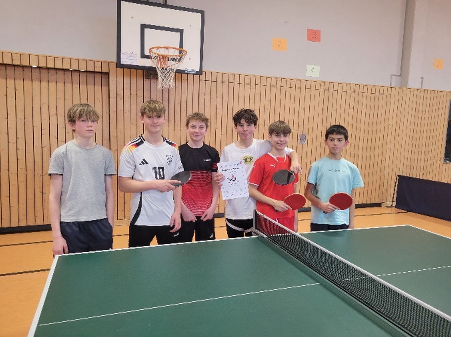 Am Montag den 24.11.2025 hatten 6 talentierte Jungen aus den Jahrgangsstufen 7 und 8 ihren großen Auftritt in der Turnhalle der Eichendorff-Schule in Hof. In der Wettkampfklasse III duellierte sich das Jean-Paul-Gymnasium und das Otto-Hahn-Gymnasium aus Marktredwitz. Einige Jungen spielen seit vielen Jahren aktiv im Verein und haben somit bereits wertvolle Ranglistenpunkte gesammelt. Entsprechend hoch waren die eigenen Erwartungen an den Turnierverlauf.
